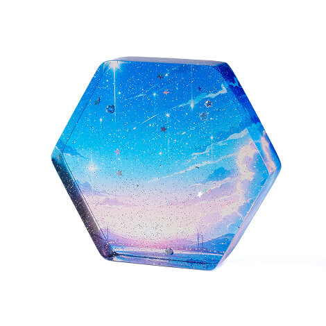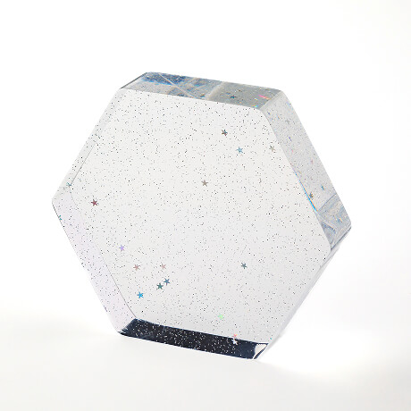 個の部材に印刷をするとまるで輝きを放っているようなキラキラとした印象の商品になります。